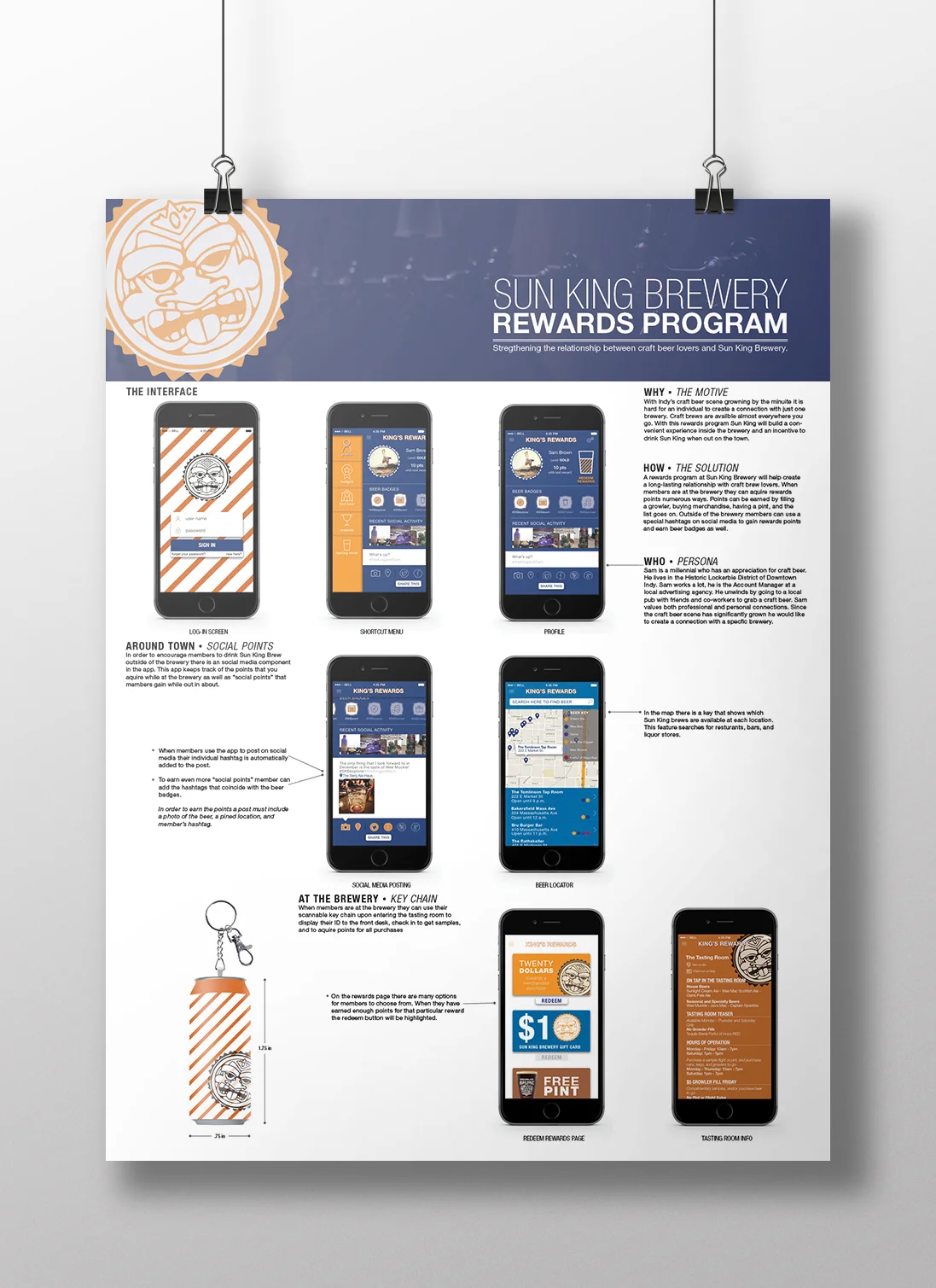 The craft beer scene has create a cultural movement in Indiana, there are 23 breweries in the metro area alone. I took a look at the current Sun King Brewery experience and found that besides the amazing beers that they brew needed something to make them unique. In order to improve upon the already great experience SKB needs to build a consistent relationship with the craft beer consumers. This App provides incentives for loyally choosing Sun King brews both at the brewery and locally.